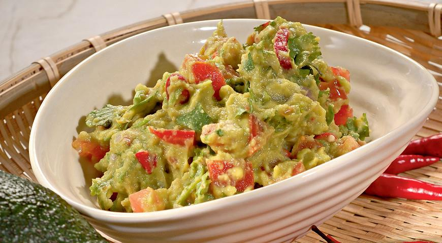 Разрежьте авокадо пополам, удалите косточку и выложите мякоть в миску. Разомните авокадо вилкой до получения однородной массы. Добавьте лук, помидор, лимонный сок, кинзу, соль и перец. Тщательно перемешайте все ингредиенты. Гуакамоле готово к подаче. Подавайте с тортильями или чипсами. 2. Итальянская паста карбонара