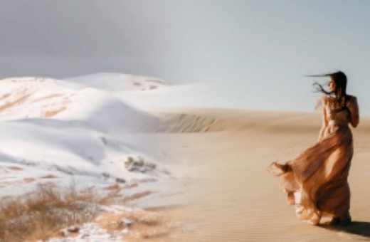 А там... Больше не было видно желтых песчаных дюн. Только в некоторых местах еще желтели пятна песка. Остальное все пространство уже было покрыто белым снегом, который резал глаза. Это было совсем не обычное для пустыни явление. Но Катерина залюбовалась этим привычным для нее белоснежным ковром.