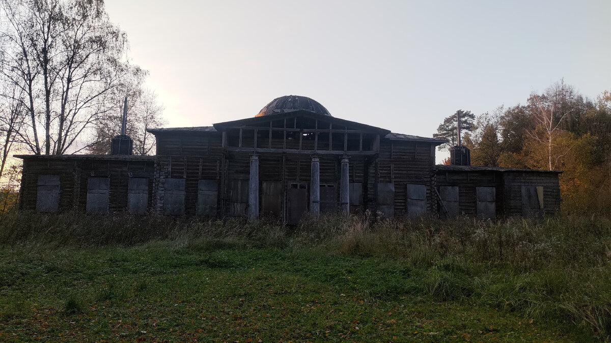 Мы снова отправились в прошлое.. На этот раз посчастливилось познакомиться с шедевром деревянного зодчества первой половины XIX века. Это мощное здание в стиле ампир - всё что осталось от некогда удивительного усадебного комплекса. Имение в селе Васино (Московской губернии) было основано некой помещицей А.И.Плаховой во второй половине XVIII века. В XIX веке новым владельцем становится дворянин П.Ф.Вельяминов. Именно он под руководством архитектора А.С.Кутепова отстраивает единый ансамбль. Многочисленные хозяйственные постройки, липовая аллея, пейзажный парк, и конечно, жемчужина усадьбы - главный дом! У парадного входа располагалось шесть колон разной ширины (сохранилось только три), по бокам размещались башни-шпили, а большой купол украшал крышу. В 1917г владение национализировали, в хозяйском доме разместили военный комиссариат, позднее организовали школу. Со временем все постройки были разрушены, парк зарос, а главное здание обветшало. Школа переехала и помещение не использовалось