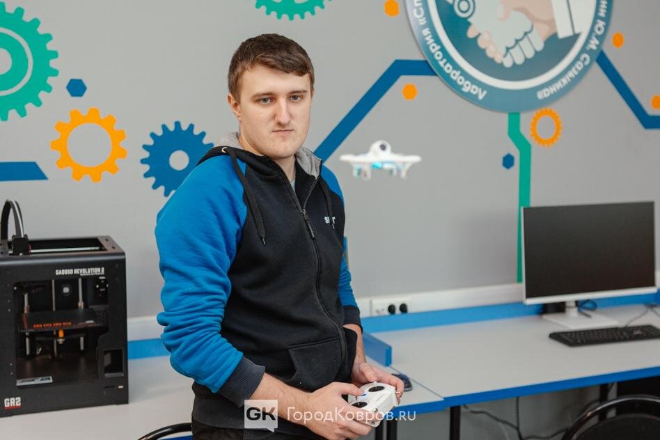 Максиму 22 года, он сотрудник ВНИИ «Сигнал» и преподаватель дополнительного образования ЦДОД «Родничок». Его предмет – робототехника. Беседовали мы в робототехнической лаборатории имени Сазыкина (филиал ЦДОД «Родничок»), на территории энергомеханического колледжа. Именно в ней Максим готовился к гонкам. Точнее, изначально готовил своих учеников.