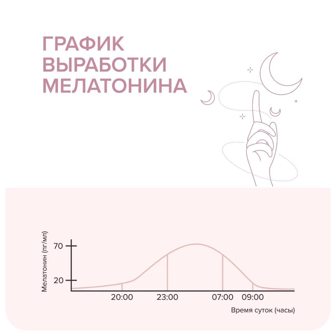 🌸 В основном мелатонин вырабатывается ночью. Чтобы гормон вырабатывался полном объеме, самый лучший режим сна – ложиться до 24:00 и спать до 7:00 в полной темноте, при этом особенно важно крепко спать с полуночи до 04:00 (эти 4 часа критически важны для организма).