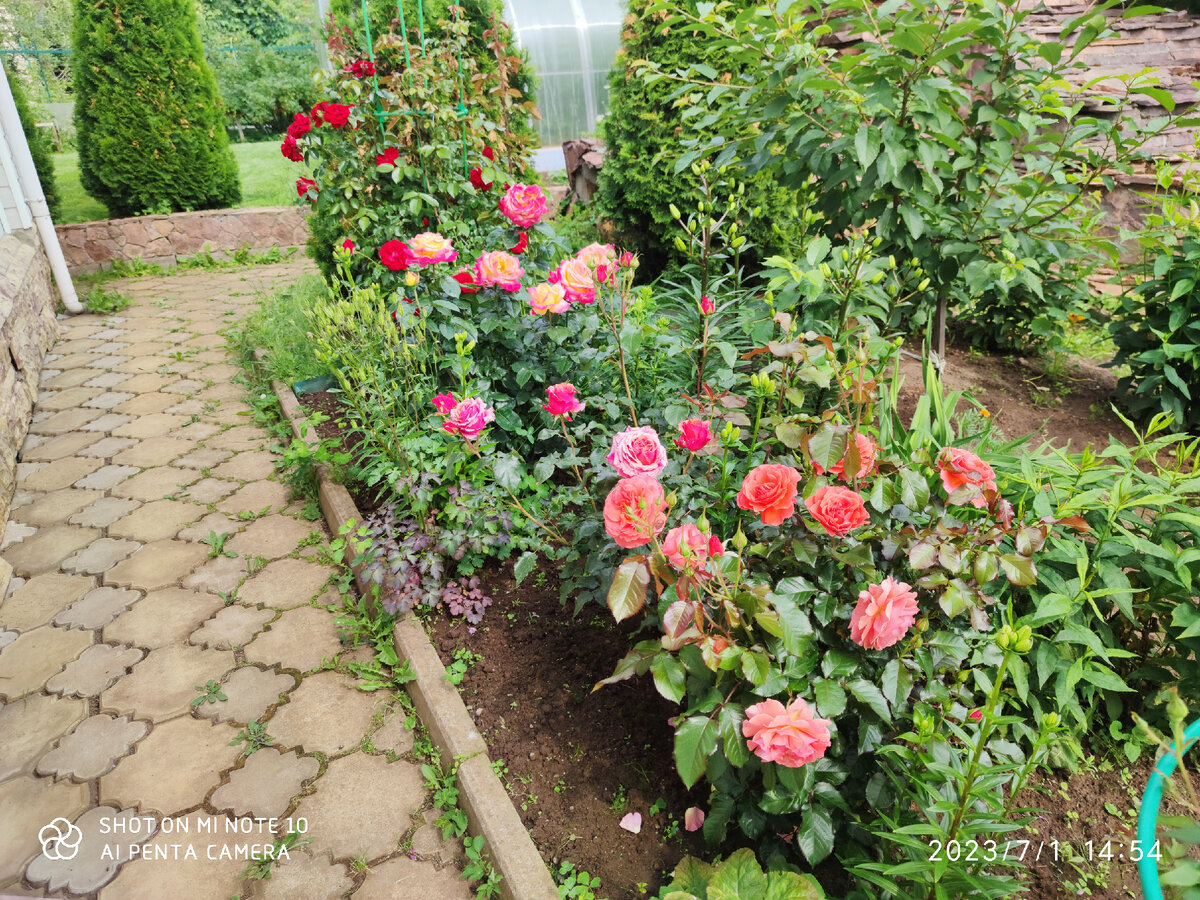 Мой участок сравнительно небольшой, всего десять соток. Расположен в Ленинградской области, в низине, на месте бывшего болота. Микроклимат у нас капризный. Температура даже по сравнению с соседней деревней, которая расположена на возвышенности ниже на 2 градуса. Весь туман ползёт к нам, в низину. Заморозки более серьёзные и частые. Зимние морозы злее. По сравнению с Санкт-Петербургом столбик термометра опускается ниже на 4-5 градусов. Может быть поэтому в нашем садоводстве розы не особо популярны. Все сорта роз у нас нуждаются в укрытии. А кому нужны лишние проблемы!? Мне😄. Я уже пенсионерка, и у меня появилось время и новые увлечения. Одно из них - розы. Сейчас их 54. К сожалению весной у меня выпало две розочки - Инка и Чипэндейл. Так уж сложилось, что розы посажены вдоль дорожек. Большинство роз приобретено в специализированных питомниках "Вдохновение"и " Розы вдохновения". Об этих питомниках у меня остались только положительные впечатления. И небольшое количество роз, которые б