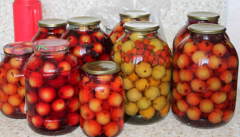 Фрукты у нас не растут (плодовые вымерзают), их привозят на рынок из Китая. Но варенья и компоты делаем в любом случае, на свой манер. Есть, к примеру, грушки дикие — мелкие, твердые, терпкие, вяжущие. Но в компоте — вкусны, и даже душисты. Грушки хорошенько промыть. Опустить в кипящую воду, довести до кипения и поварить на медленном огне, аккуратно помешивая, следя за тем, чтобы не лопнула кожица. Откинуть на сито и сразу же горячими разложить по стерилизованным банкам. Внимание: банку заполняем до верха!
