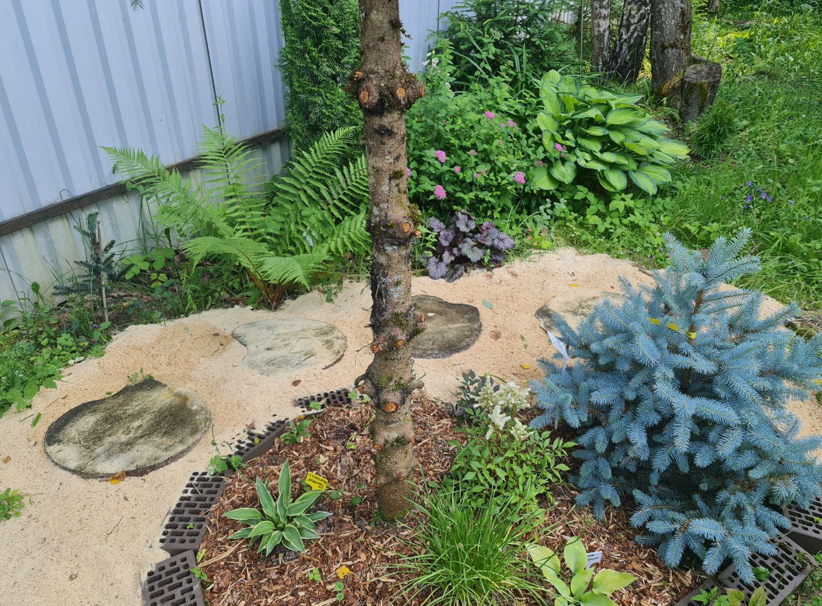 У меня она растет в таком месте, где у нормальных людей был бы палисадник - под окнами дома на полутенистой полянке. Место не самое приятное для голубой елочки, но пока она отлично держится.