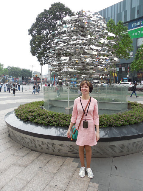 Город второй. Фошань. Часть 1. Рыбы и рыбки. Когда выяснилось, что из Гуанчжоу в Фошань можно добраться прямо на метро, то этот город был сразу добавлен в список желаемого. Почитал интернет, посмотрел видеоролики. Оказалось, что город действительно интересный. Город славился, как один из центров восточных единоборств. Здесь жили и преподавали два очень известных (нам - по фильмам о "кунг-фу") человека: Ип Ман и Вон Фэйхун. Ип Ман был учителем Брюса Ли, а Вон Фэйхун известен не только как учитель, но и как врач. Славился своим бескорыстием, за что его и прозвали Робином Гудом 20 века ( фильмы "Пьяный мастер», «Пьяный мастер 2» с Джеки Чаном и «Однажды в Китае» с Джетом Ли). Очень удобно, что два музея, им посвящённые, находятся на территории храма Дзу Мяо, который ещё и местный краеведческий музей. Ип Ман Учитель и его ученик Ножики мастера "Деревянный человек" и Джеки. Вон Фейхун Знамя отряда "Чёрного Знамени". Чёрное. "Пьяный мастер 2" Костюм тигра (исторический). Храм де