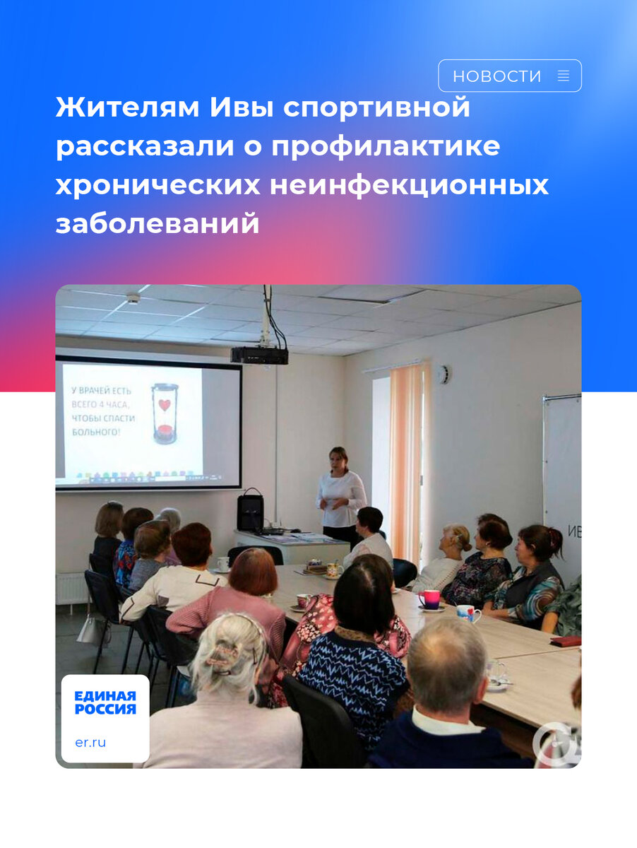 👵Октябрь - месяц внимания к людям старшего поколения, их здоровью. На этой неделе в ТОС «Ива спортивная» для жителей "серебряного" возраста района прошла лекция, посвящённая профилактике хронических сердечно-сосудистых и онкологических заболеваний