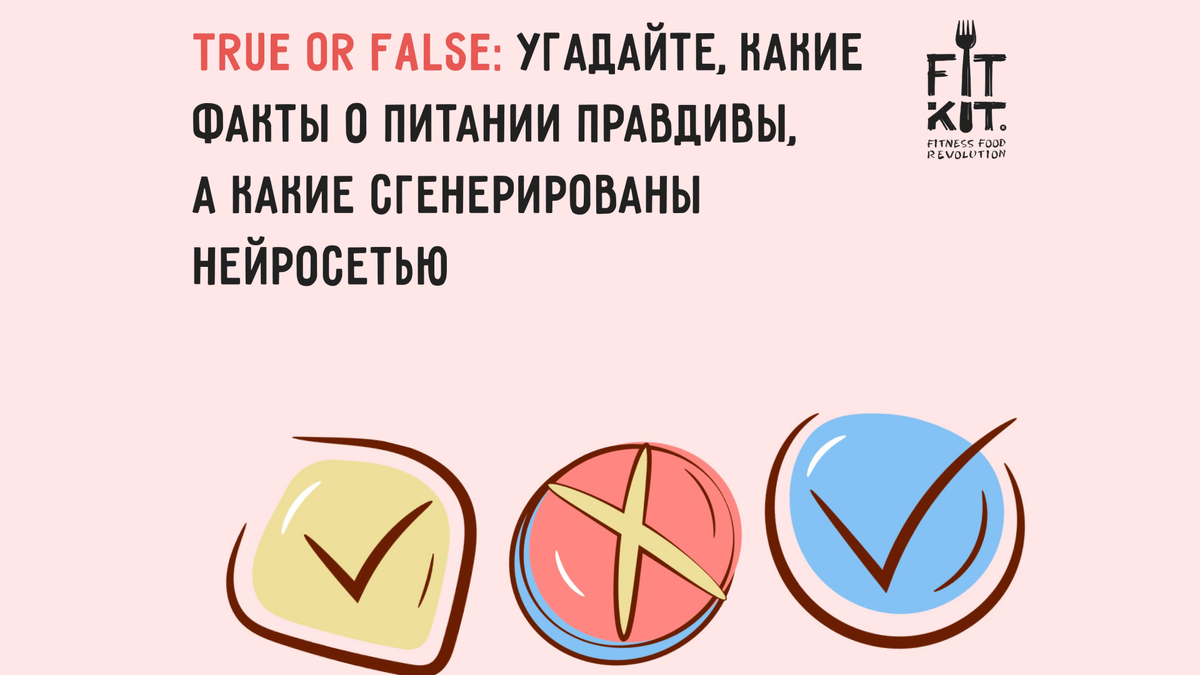 Привет, на связи FITKIT! Сегодня мы решили поиграть с вами в небольшую игру. Мы даем вам 2 факта о питании: один — чистейшая правда, доказанная научными исследованиями, второй — грязная ложь, которую сгенерировала нейросеть. Ваша задача — вскрыть все фейковые, но хорошо аргументированные утверждения.