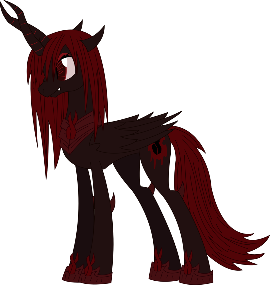 Она отличается от большинства подменышей, таких как Кризалис, поскольку у нее заостренные уши, наклоненные назад, рог, разделенный на две части, переплетенные вместе, образуя форму красного маркера, и крылья, которые намного больше и имеют больше шипов, чем у обычного пегаса или аликорна. Её знак отличия представляет собой затенённый красный маркер с красным свечением позади. Грива и хвост выглядят лохматыми, они намного выше, чем других пони и темно-красного цвета.