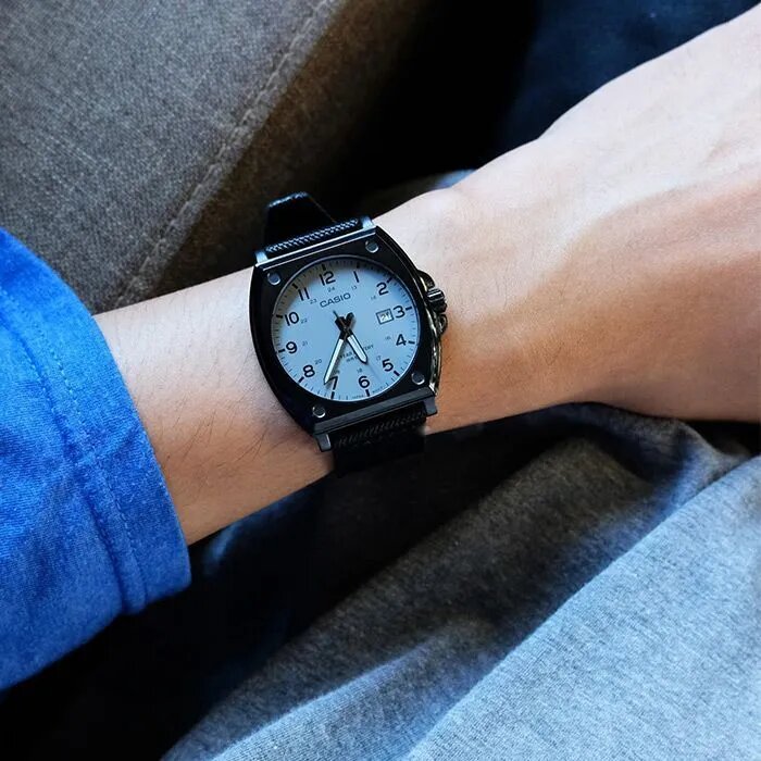 Что же касается расцветки, обе модели получили комплектацию из черных корпусов и браслетов. Следует отметить, что синяя неоновая расцветка индексации на черном циферблате MTP-E715D-1A смотрится просто сногсшибательно. Менее захватывающе и более сдержано выглядит MTP-E715D-7A с его белым циферблатом и черными метками. Такое исполнение больше подходит для любителей традиционного представления о внешнем виде часов.