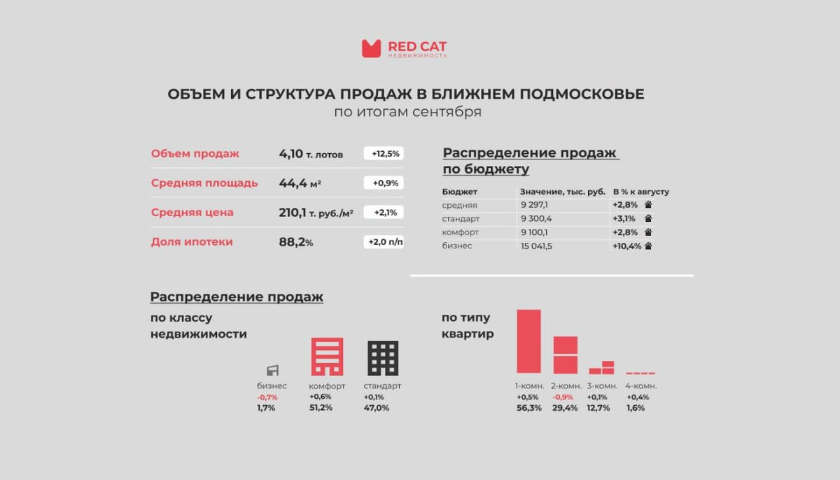 Обзор динамики и структуры продаж в ближнем Подмосковье по итогам сентября