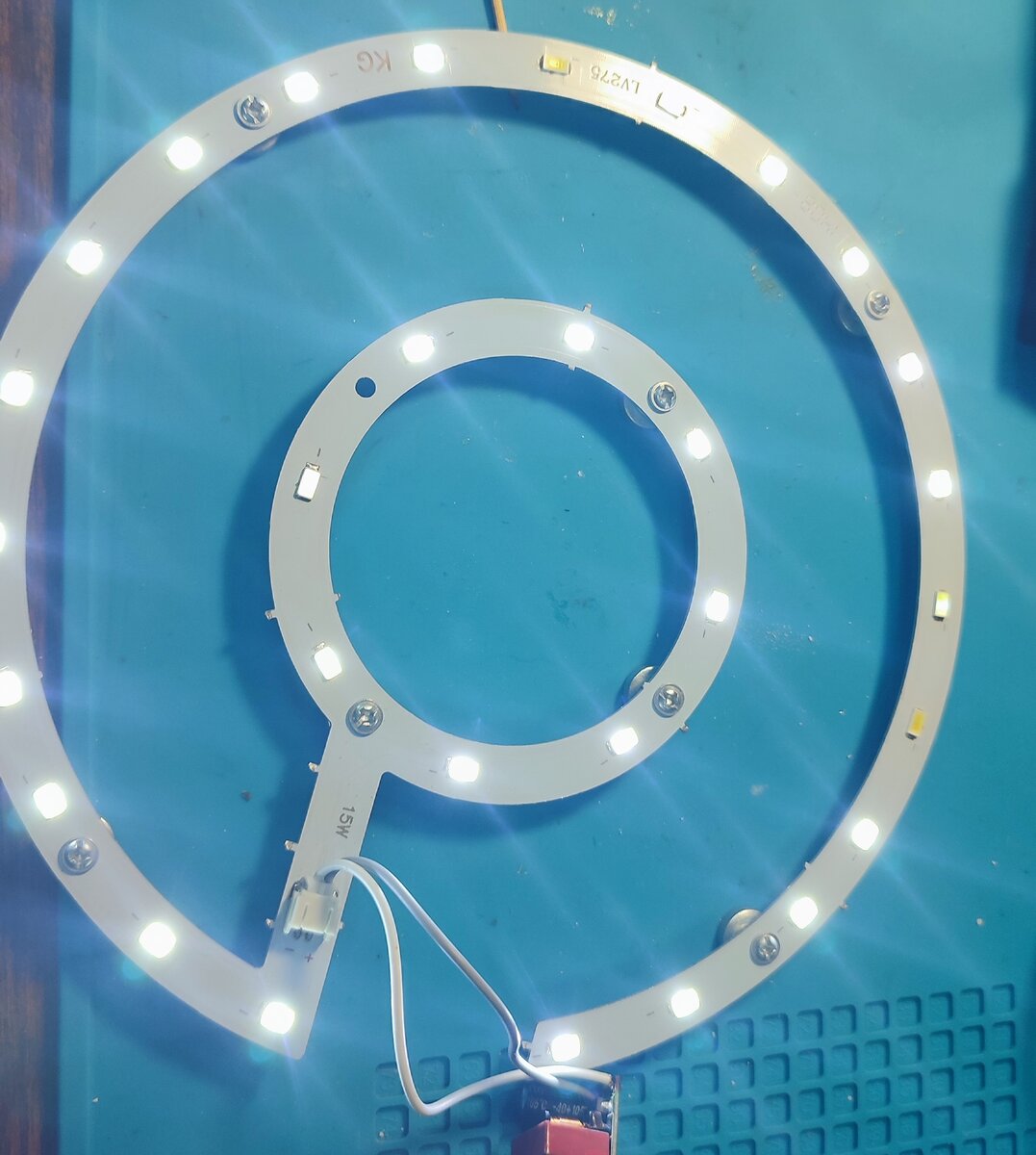 Здравствуйте дорогие друзья! Сегодня снова светильник. То их нет, а то сразу несколько). На этот раз это мой домашний светильник. Висел в ванной. Проработал ей-Богу лет восемь. Точного названия я уже и не скажу, коробки нет давно. Покупали рублей за шестьсот у нас в поселке. И магазина того уже нет, а светильник до последнего работал. Он практически не выключался. Ночью, так постоянно включен был. И все бы ничего, но в последнее время стал светить все тусклее и тусклее. Иногда мог начать мерцать, но не потухал - работал. Светил еле-еле , но светил. Жене надоел этот интимный свет. И мы купили новый светильник. А этот я забрал на эксперименты. Эти светодиодные светильники по сути одного типа. Вот такая замечательная конструкция. Алюминиевая основа на которой 30 светодиодов 5730 (попарно) белого цвета. Сама основа к плафону крепится на магнитных ножках, что очень удобно. Включил лампу, ожидаемо не горят несколько светодиодов. Отмечаю, которые не горят и те которые горят тускло. Меняем