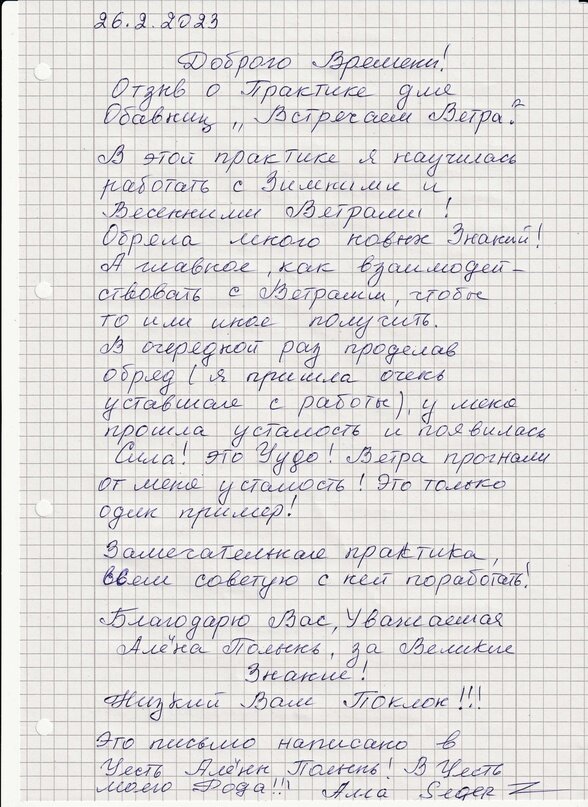 Нам прислали отзыв о Практике Алены Полынь «Встречаем Ветра». Практики, что дает Великий Учитель несут в себе ценные знания, которых вы нигде более не найдете. Как же изменилась Жизнь автора отзыва, читайте ниже. 26.2.2023