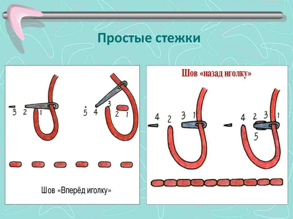 1. Простой стежок – это самая простая техника, которая используется для соединения двух краев ткани. Для выполнения простого стежка нужно продеть иглу через ткань и сделать небольшой шов. 2. Зигзагообразный стежок – это техника, которая используется для обработки краев ткани. Зигзагообразный стежок помогает избежать распускания ткани. 3. Скрытый стежок – это техника, которая используется для незаметного соединения двух краев ткани. Скрыты