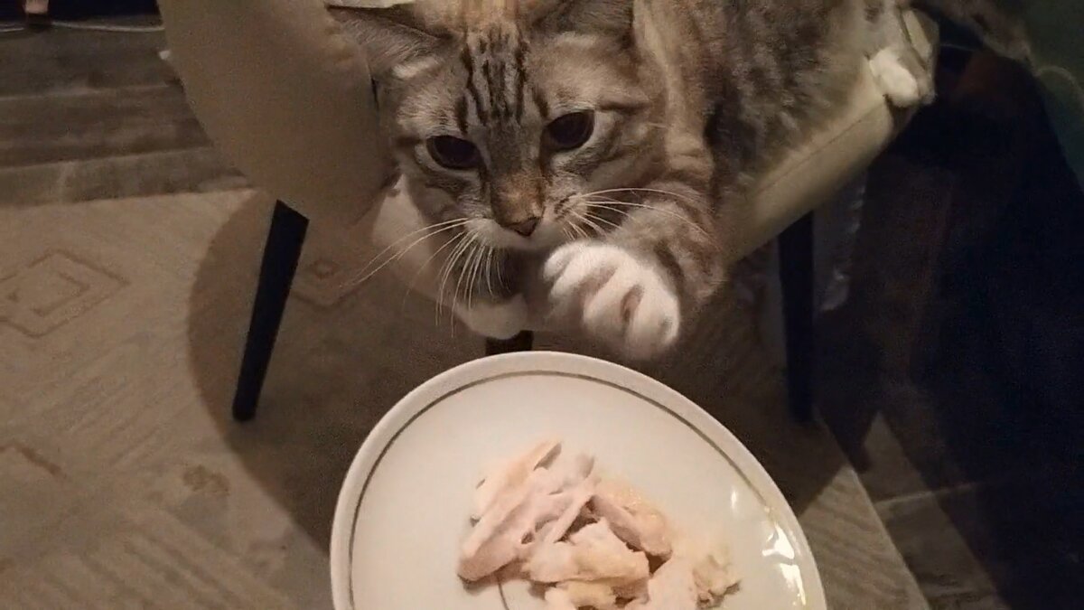 Вечером, только хозяйка оповестила общественность прайда о том, что курица готова, на кухне (обогнав, бегущего к сковороде меня) собрались ушастые и хвостастые делегаты куриного съезда. Естественно, я не сел за стол пока не наделил делегатов всеми необходимыми полномочиями для поедания нежного куриного мяса. И это при том, что делегаты уже откушали свой собственный ужин!