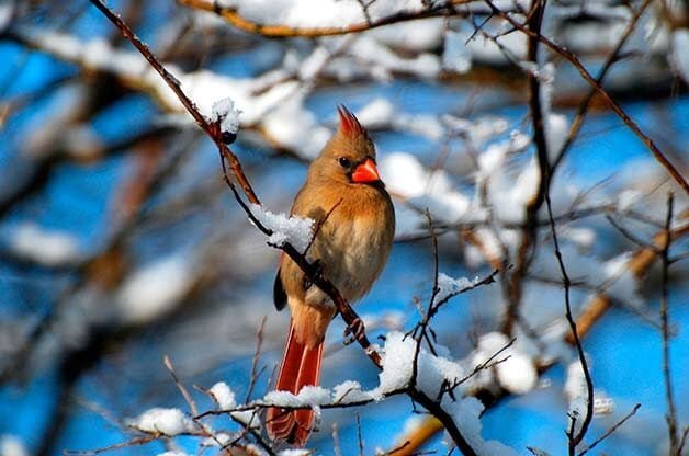 Если этот северный кардинал был сварливым, я его не виню. Я сидела внутри, где было очень тепло, а он был снаружи, на бодрящем холоде. Он примостился на кизиловом дереве прямо за окном нашей кухни, когда выпал сильный снегопад. Всякий раз, когда мы подходим к кормушке, чтобы наполнить ее, он взволнованно поглядывает на нас.