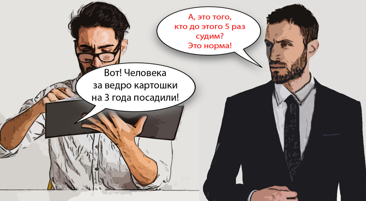 Мол, листайте дело, ищите карточку на сайте суда – за каждым «сидящим за мешок картошки» обычно пара приговоров условно висит. Не отбытых. Или тройка судимостей…