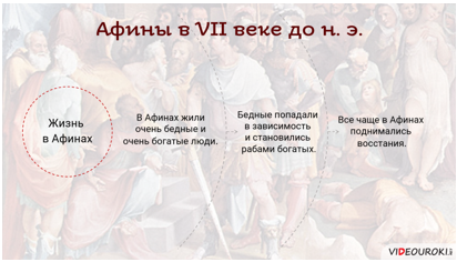 Урок знакомит учащихся с реформами афинского архонта Солона и процессом зарождения демократии. Для понимания необходимости реформ в начале урока описывается положение демоса в VII веке до н. э. Учащимся предстоит познакомиться с Солоном, человеком, который пользовался большим уважением среди афинян и был избран архонтом, а также понять его отношение к изменениям в государстве. Далее рассматриваются основные реформы, проведенные Солоном, и их влияние на жизнь афинского полиса. На протяжении урока учащимся предлагается обсудить некоторые из законов Солона и возможность их применения в современной жизни. Особое внимание в уроке уделяется изменениям в управлении государством: созданию Совета четырехсот, передаче верховной власти Народному собранию. Как результат, в Афинах зародилось новое понятие «демократия», или «власть народа». В конце подводится итог и рассматривается значение реформ Солона. Скачать этот видеоурок вы можете на странице: