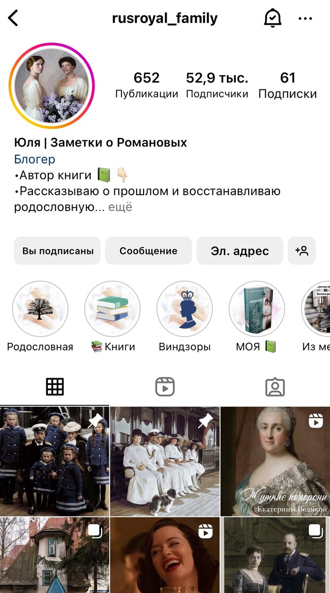 История такая. Я частенько просматриваю книжные новинки, выходящие на русском и английском языке. На русском даже иногда что-то покупаю. Глаз упал на книгу блогера-учительницы истории о Романовых. Я решила заглянуть в сам блог, мне ведь тоже интересно, кто как делает короткие видео. И как зрителю, и как автору.