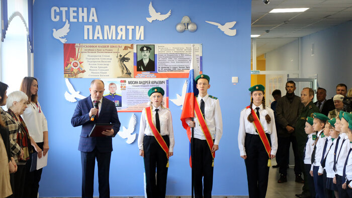 В Долгодеревенском (Сосновский район, Челябинская область), в здании начальной школы, открылась мемориальная доска бывшему ученику, одному из лучших снайперов России, кавалеру двух орденов Мужества Андрею Мосину, погибшему в ходе специальной военной операции, передает корреспондент Агентства новостей «Доступ». На мероприятии присутствовала мама военного Ольга Мосина. Она рассказала, что Андрей был профессиональным военным, 19 лет прослужил в той части, куда был призван, и погиб три месяца назад – 12 июля 2023 года, закрыв собой напарника: «Они только вернулись с задания многодневного, еще обсохнуть не успели, их отправили на другое задание. Что такое снайперы-разведчики? Они уходят глубоко в тыл, оборудуют себе лежку, выслеживают врага, передают по рации… А так как он с 2011 года был лучшим снайпером России, о нем слышали, открыли по ним артиллерийский огонь. Он прикрыл рюкзаком своего напарника, руки были подняты, и осколок попал на левый край броника и пробил сердце. Дети, которые се