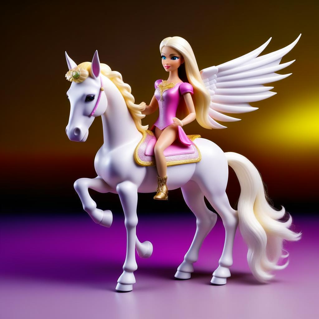 Глава 1: Встреча с Пегасом и обучение полёту В одной волшебной стране, где каждый день случались чудеса, жила девочка по имени Барби. Она была смелой и веселой и всегда мечтала о волшебных приключениях. Однажды, отправившись на прогулку в лес, Барби услышала слабое пение. Она пошла в направлении звука и увидела великолепного Пегаса, который летал над поляной. Пегас был белым как снег, с гривой из блестящих звезд. Пегас приземлился перед Барби и сказал: "Здравствуй, маленькая девочка. Меня зовут Стелла, и я Пегас, страж этого волшебного леса. Ты выглядишь как настоящая мечтательница. Что привело тебя сюда?" Барби рассказала Стелле, как она всегда мечтала о волшебных приключениях и о том, как она хотела бы научиться летать. Стелла улыбнулась и сказала: "Барби, у меня есть волшебная способность передавать свою магию тем, кого выберу. Я готова научить тебя летать, но это потребует твоей преданности и смелости." Барби с радостью согласилась и начала обучение. Она проводила дни и ночи, трени