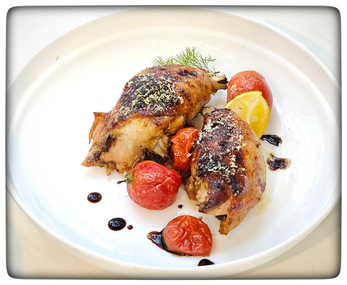Цыпленок качиоторе, это сочное блюдо с хрустящей корочкой. Простой рецепт куриных ножек, в котором за необычный вкус отвечает маринад из лимона или лайма и оливок. Получается одновременно нежно и в меру остро. Ингредиенты Готовим маринад для нашего блюда. Обычно маринад готовится на основе оливкового масла. Я приготовила маринад с соевым соусом лайт, с добавлением чеснока, паприки, тимьяна, оливкового масла. Мариновать курочку лучше несколько часов, а лучше всю ночь. В форму для запекания помимо курочки кладем кусочки лимона, помидоры черри. Запекаем при температуре 180 градусов примерно 40-50 минут. Когда голень станет румяная, посыпаем натертым твердым сыром и запекаем еще минут 5 на режиме конвекция. Перед подачей к столу , по вкусу, добавляем классический йогурт. Подается цыпленок качиоторе с овощным гарниром. Приятного аппетита и отличного настроения. Готовьте, экспериментируйте, у вас всё получится. Подписывайтесь, пишите комментарии, делитесь с друзьями, ставьте лайки 👍 –