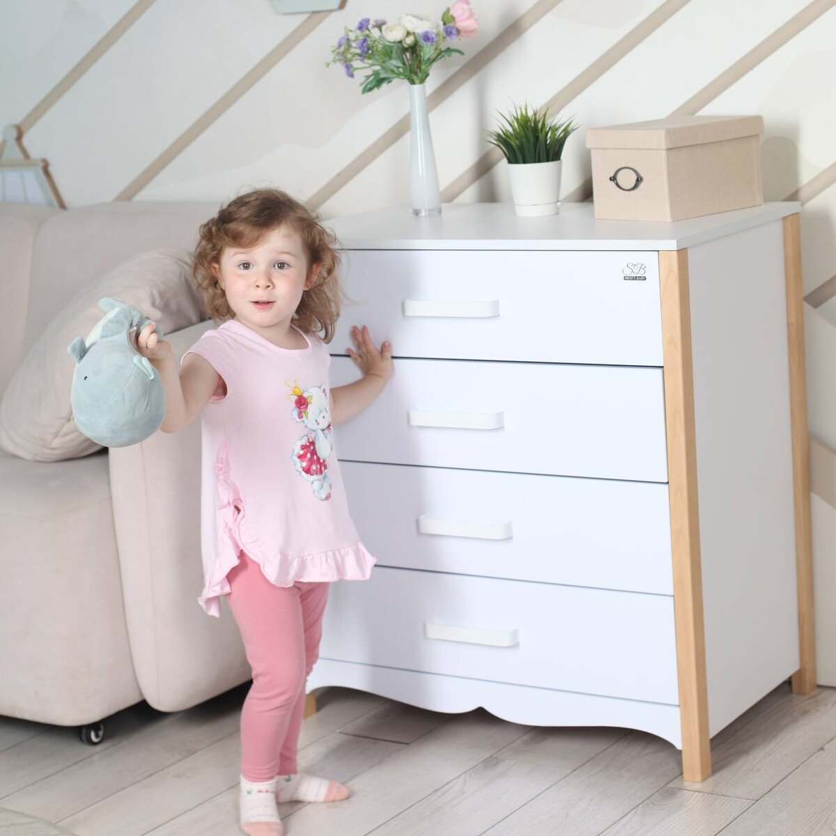 Следующим ключевым элементом в детской комнате, без сомнения, является комод. Он служит не только местом для хранения детской одежды, пеленок, распашонок и ползунков, но также облегчает процесс ухода за младенцем. Пеленальная поверхность может сниматься, и использоваться как обычный комод. Отличным вариантом для выбора будет Sweet Baby Giovanni.