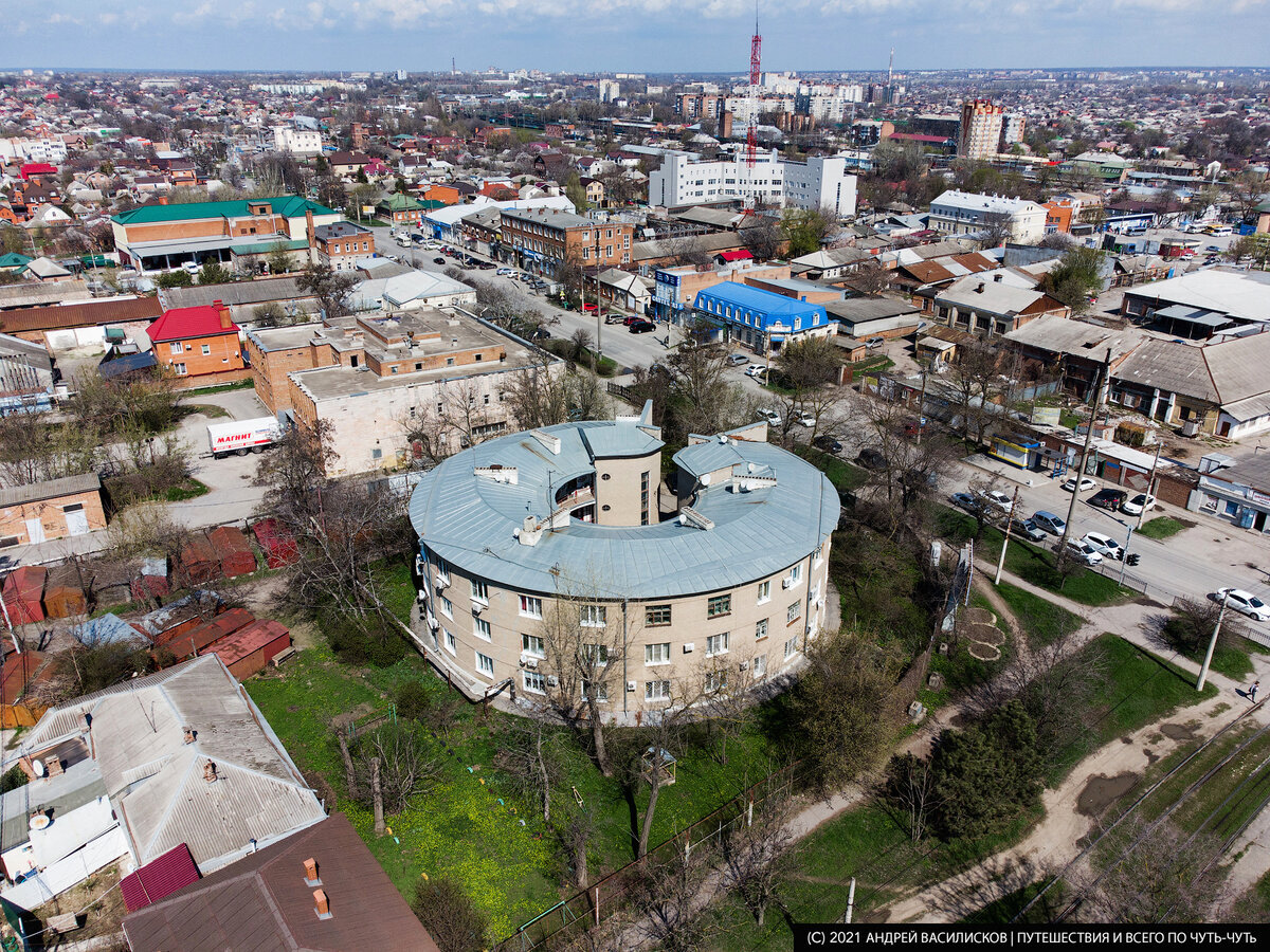 Страна развивалась, НКВД ещё не лютовало, а разрешение на строительство получали самые невероятные проекты. Вовсю развивался конструктивизм и самые смелые строительные идеи одобрялись на высшем уровне. Не стал исключением и город Таганрог. Пожалуй, самым смелым архитектурным проектом на родине Чехова стал круглый лом. Он построен по проекту архитектора Ивана Таранова-Белозёрова. Зачем он спроектировал его круглым - история умалчивает. Скорее всего потому что он художник, он так видит. Таранов-Белозёров после учёбы работал в Южном машиностроительном тресте, в состав которого входил завод "Красный котельщик". И вот, понадобилось заводу жильё для своих рабочих. И никто был не против того, чтобы жильё это стало круглым. Интересно, что потом думали жильцы круглого дома об архитекторе, когда пытались обставить полученные квартиры? Скорее всего, он получил массу нелестных слов в свой адрес.