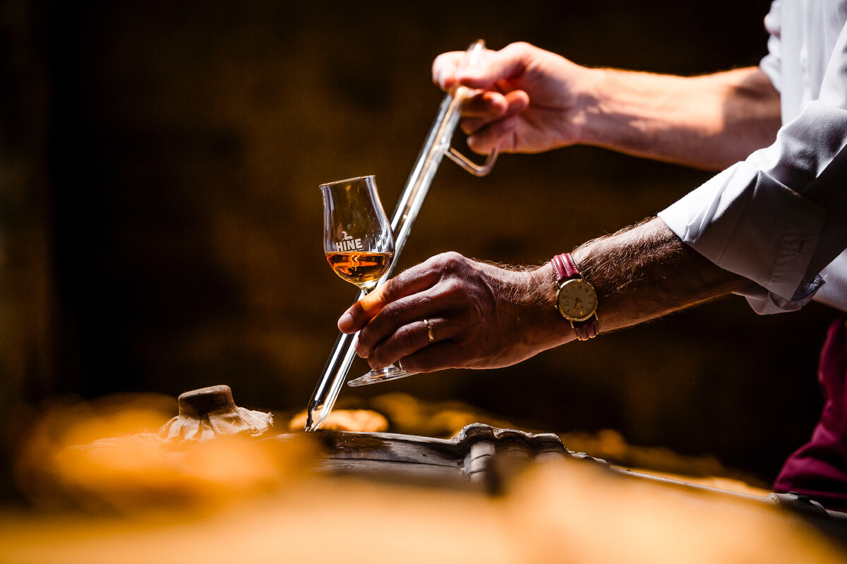 Коньяки Hine можно охарактеризовать тремя словами: «утонченность», «комплексность», «деликатность». Чтобы создать такие коньяки, мастера дома используют белые вина из сорта винограда уни блан безупречного качества. Дистилляция вин происходит вместе с осадком, который во время перегонки усиливает ароматическую структуру коньячного спирта. Своим изяществом коньяки Hine также обязаны древесным ноткам, получаемым от дубовых бочек с мелкозернистой структурой из знаменитого леса Тронсе. Их особенность заключается в том, что содержащиеся в них танины обогащают о-де-ви в процессе созревания чрезвычайно мягко и последовательно. Выдержка происходит в два этапа: сначала короткий период в бочках из нового дуба, затем — длительная выдержка в более старых бочках, которая почти не передает о-де-ви танинных характеристик. Подобная деликатность при выдержке наделяет коньяк изящной гармонией фруктовых и цветочных нот с мягкими ароматами дубовой древесины и специй.