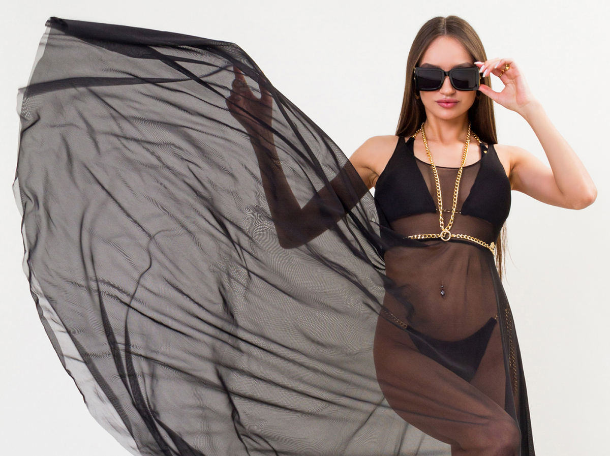 2. Платье-солнце черного цвета из мягкой сетки премиум качества