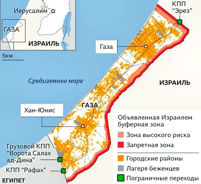 У газы есть граница с Египтом. Но на ней выстроен бетонный забор, а пункты пропуска имеют весьма ограниченную пропускную способность. Примут ли египтяне беженцев из Газы, в каком количестве и в какие сроки – вопрос. Как смогут выжить даже те, кто переберется на Синай – не знает никто. Ведь до сих пор Сектор Газа выживал в основном за счет связей с Израилем, получая именно оттуда необходимые ресурсы.