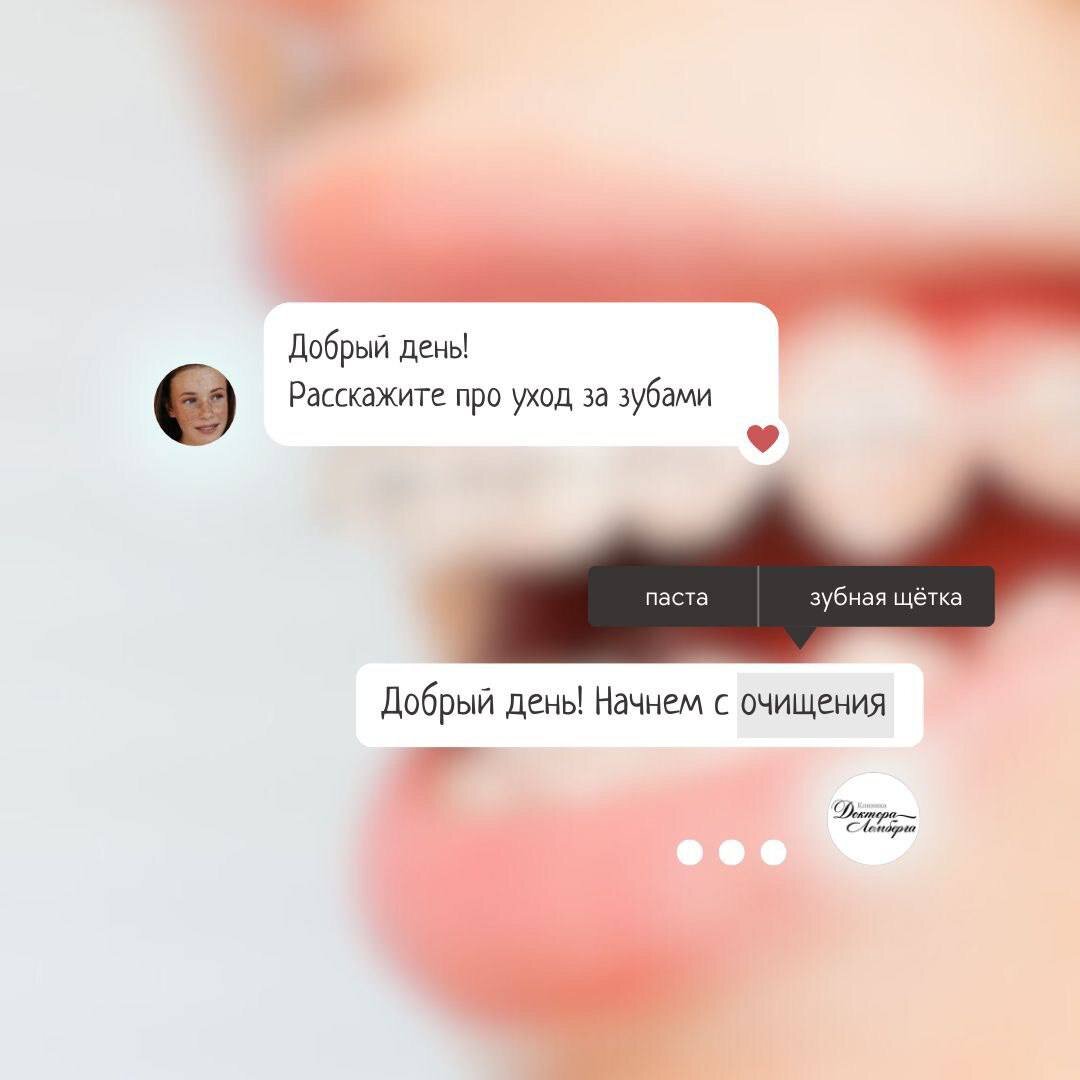 Чтобы надолго сохранить здоровье зубов и полости рта необходима качественная ежедневная гигиена и регулярное посещение специалистов. Собрали для вас несколько советов, чтобы сделать процесс чистки зубов быстрым и эффективным 🦷 • Необходимо чистить зубы два раза в день Врачи рекомендуют делать это утром и перед сном, процесс должен длиться не менее 3-х минут — этого будет достаточно, чтобы убрать кусочки пищи и от образовавшийся налёт. Движения щётки должны быть направлены от десны к краю коронки. • Уделите внимание межзубным промежуткам Для эффективного ухода можно использовать зубную нить: она поможет убрать остатки пищи, которые могут застревать и не всегда возможно убрать щёткой. • Как очищать зубы после еды? В конце каждой процедуры или после еды следует пользоваться ополаскивателем. Для эффективного очищения ополаскивать полость рта необходимо около 30 секунд. • Как выбрать зубную пасту? Зубная паста подбирается индивидуально под каждого человека. Выбор зависит от состояния зубов