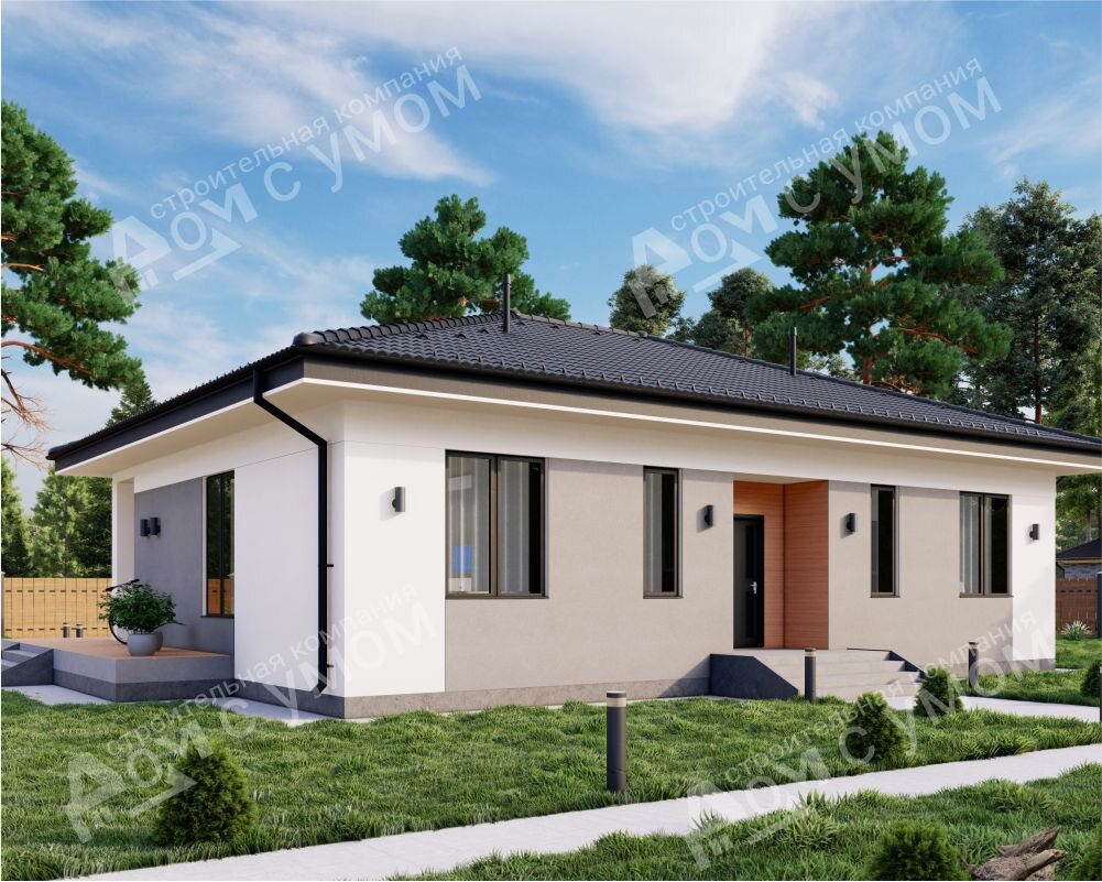 Это одноэтажный дом компактных размеров. Проект задумывался как альтернатива городской квартире. Площадь дома небольшая, но мы постарались использовать каждый ее сантиметр максимально эффективно. Характеристики: Общая площадь: 158,9 кв.м