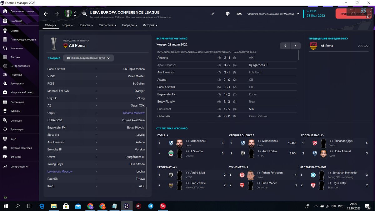 Локомотив разгромив во втором раунде Лиги Конференций Расинг из Люксембурга по сумме двух матчей 10:1, попал на польскую Легию из Гданьска. Динамо же свой путь в еврокубках начнет с третьего раунда, в соперники москвичам достался хорватский Осиек.