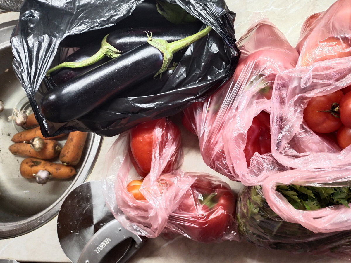 Вот половина овощей, кастрюля на 6 или 7 литров, Татьяна точно не знает, а я не измеряла, не до того было. :)
