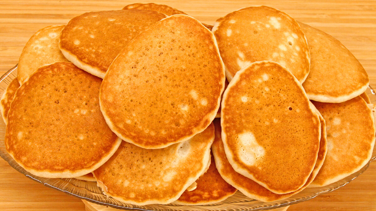 Здравствуйте, товарищи Кулинары! Продолжимте панкейковую тему? :) Хотя уверена, что многие из вас сегодня её для себя только откроют! Всё-таки у нас больше жалуют оладьи - просто потому, что они нашенские. А панкейки - это какой-то непонятный, чужой, заморский зверь :) А зверь-то, панкейки, совсем не страшный! Зверь-то нежный и пушистый в прямом смысле этих слов :) Процесс приготовления теста для американских панкейков мало чем отличается от процесса приготовления теста для наших оладий. Только продукты немного другие. И на сковороду выкладываем их так же - только без масла :) Поэтому происходит не жарение, а выпекание. Поэтому и результат совсем другой, и калорий гораздо меньше :) В общем, я надеюсь, что, однажды открыв для себя эту тему, закрывать её вам уже не захочется! Готовится за 30 минут, получается 4 порции. Ингредиенты: