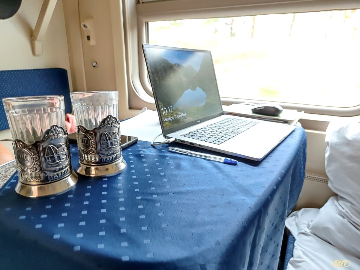 Нам еще и с соседями по купе повезло. В Москве сел только один пожилой мужчина, тоже едущий в санаторий. Он всю дорогу спал, мы его не видели и не слышали. А верхняя полка над ним пустовала почти до вечера. Потом зашел еще один мужчина в возрасте и почти сразу завалился спать. Вышли оба наши попутчика совсем утром и дальше мы ехали вдвоем.