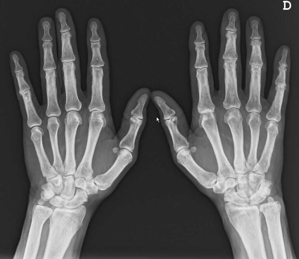 Исследование показало, что существующий препарат эффективен при лечении симптомов остеоартрита рук. Новое исследование показало, что метотрексат, доступный препарат, который обычно назначают в качестве лечения при ревматоидном артрите, уменьшает боли и скованности остеоартрите рук (ОА). До сих пор не существовало эффективного лечения этого заболевания. Сотрудники из Университета Монаша и больницы Альфреда в Австралии провели исследование при участии 97 субъектов с ОА рук, осложненным синовитом, выявленным с помощью МРТ. Они получали 20 мг метотрексата или плацебо перорально один раз в неделю в течение шести месяцев. Первичным результатом было уменьшение боли, измеренное с использованием 100-мм визуальной аналоговой шкалы (ВАШ). Участникам предложили поставить на шкале отметку, соответствующую их боли. Затем ученые измерили и записали расстояние в миллиметрах от нижнего края шкалы. Среднее изменение боли по ВАШ за шесть месяцев составило —15,2 мм в группе метотрексата и —7,7 мм в группе