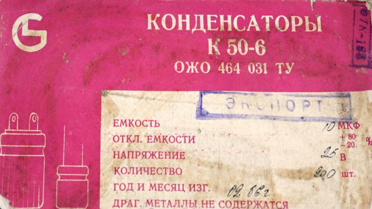 Справочная информация по перечню и количеству содержания драгоценных металлов в изделии: Конденсатор К50-6