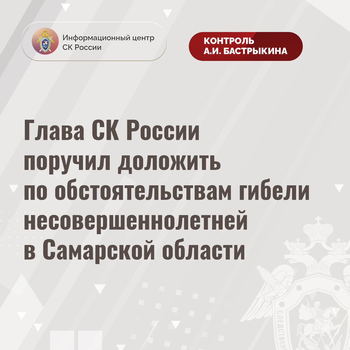 Глава СК России поручил доложить по обстоятельствам гибели несовершеннолетней в Самарской области