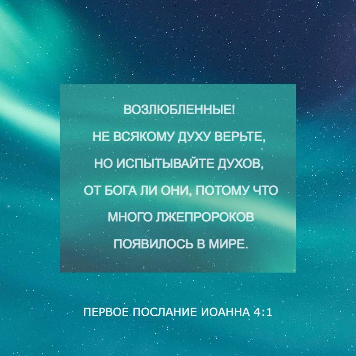 «Возлюбленные! Не всякому духу верьте, но испытывайте духов, от Бога ли они, потому что много лжепророков появилось в мире. Духа Божьего (и духа заблуждения) узнавайте так: всякий дух, который исповедует Иисуса Христа, пришедшего во плоти, — от Бога; а всякий дух, который не исповедует Иисуса Христа, пришедшего во плоти, — не от Бога, но это дух антихриста, о котором вы слышали, что он придёт и теперь есть уже в мире» (1 Ин. 4:1–3).