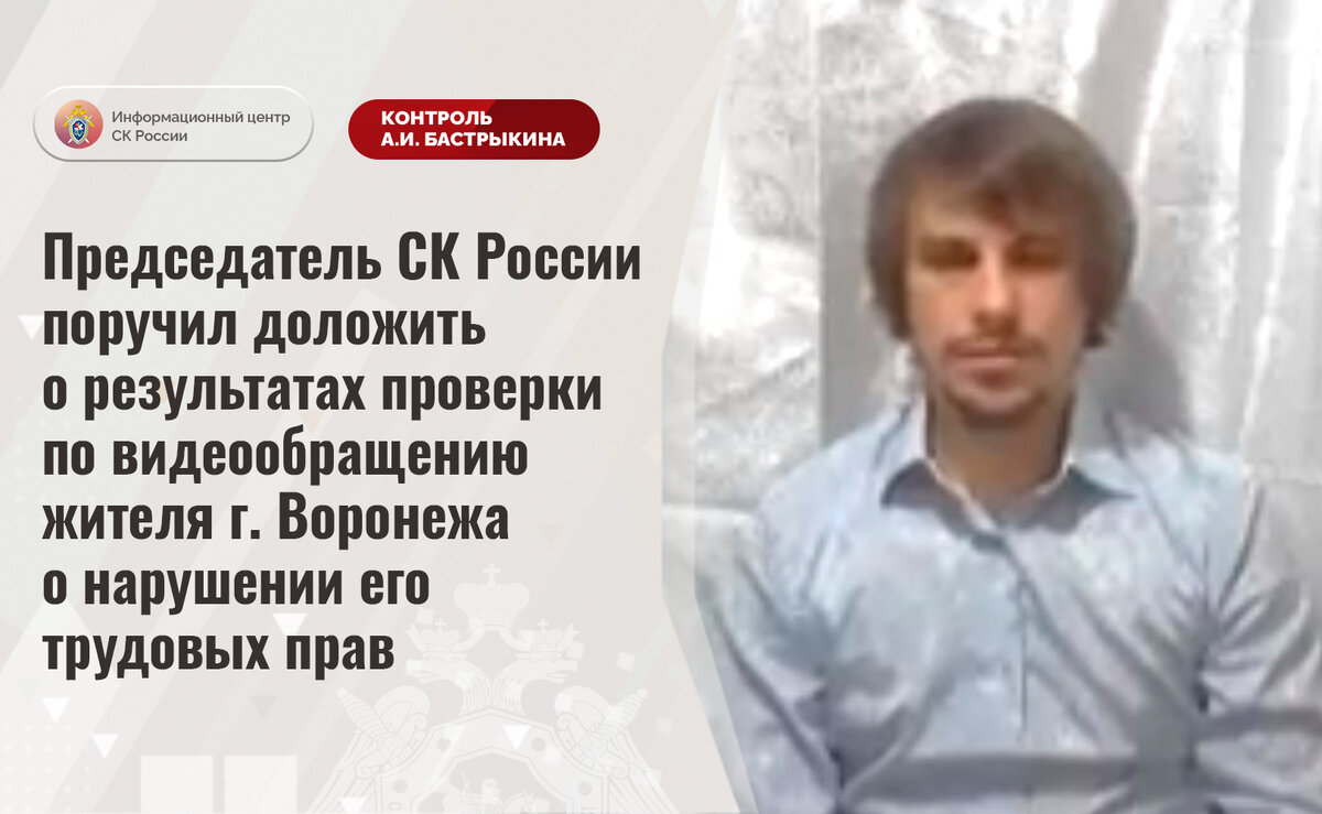 Председатель СК России поручил доложить о результатах проверки по видеообращению жителя г. Воронежа о нарушении его трудовых прав