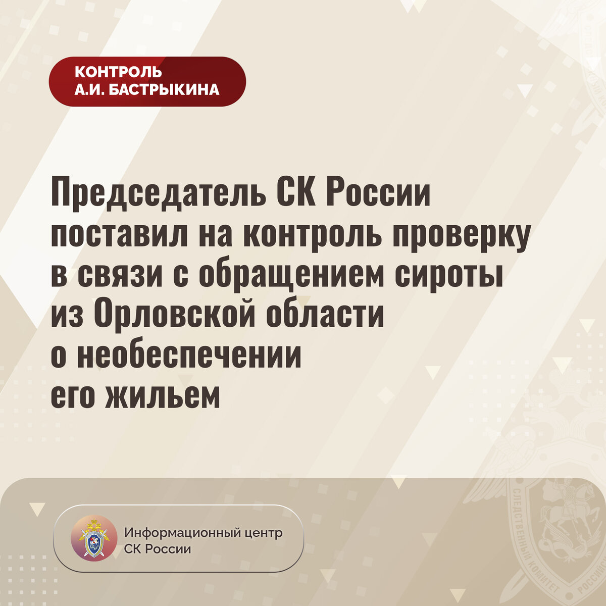 #СледственныйКомитет #СКРоссии #СКР #ИЦСКР #Информационныйцентр #АлександрБастрыкин #ПредседательСКР #КонтрольПредседателяСКР #КомментарийКонтроль #ОрловскаяОбласть