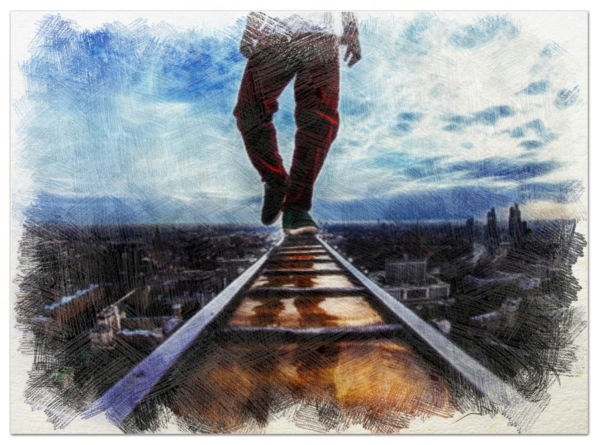 Воскресный день на окраине города. Девушка идёт в магазин по дороге мимо заброшенной стройки. Она видит на самом верху кирпичной стены молодого мужчину. Он быстро идёт по краю стены, расставив руки в стороны.