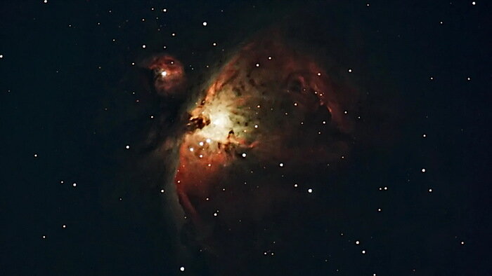 Просто облачко шириной 12 световых лет, в котором образуются новые звезды, всего в 1344 световых годах от нас. Это не первая моя попытка снять Орион, но первая специальной камерой для астрофото. Снимал на даче среди парников и бочек для полива. Прошлой осенью пытался снять его зеркальным фотоаппаратом, приделанным к телескопу, потом обрабатывал фотку на компе, тк была очень темной. И позапрошлой осенью (Орион у нас виден только осенью и глубокой ночью, приходится ловить безоблачную ночь с не очень холодной и сырой погодой) пытался снять его мобилкой прямо через окуляр. Почувствуйте разницу) Пост автора KurakinDA. Узнать, что думают пикабушники.