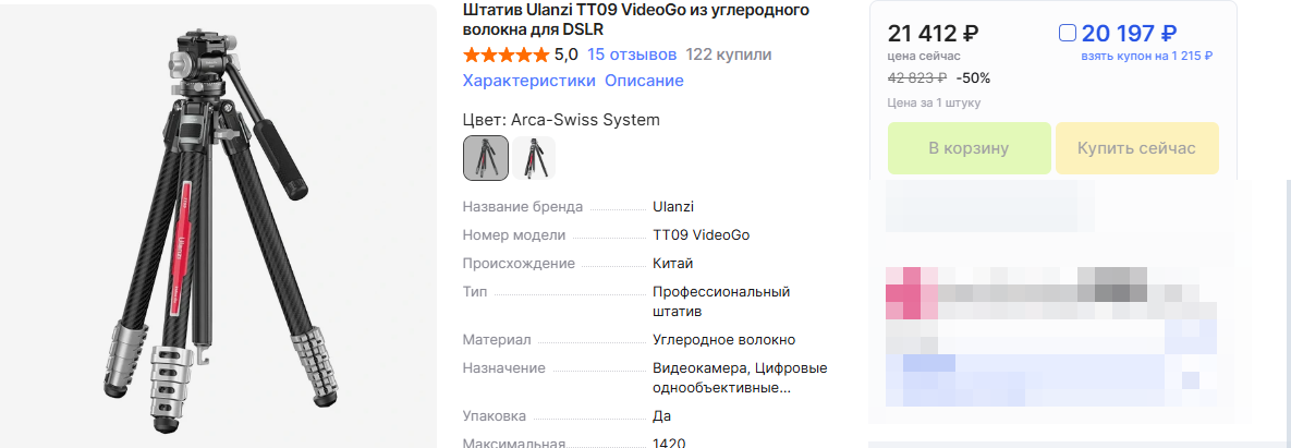 В очередной раз помогал приятелю в выборе штатива. Если вас интересует тема - делюсь ниже результатами. Требования были довольно простые - штатив должен быть лёгким - до 2 кг, складываться и помещаться в рюкзак, а в разложенном виде держать его камеру Nikon D850 c универсальным объективом 28-300. Это около 3 кг - не самое тяжёлое сочетание. Из пожеланий - фиксация секций должна быть клипсами-защёлками, а не винтовыми зажимами. Приятелю было уже приглянулся штатив Ulanzi TT09 VideoGo из углеродного волокна с 360 °панорамной головой Arca/Claw/F38 Quick Release, но он стоил довольно дорого - хотелось что-то похожее, но дешевле. И не не много хуже. Посмотрел его выбор - полистал обзоры и признаюсь сразу - выбор Ulanzi TT09 VideoGo мне понравился. Ulanzi неплохо прорабатывает свои изделия и этот штатив не исключение - он хорошо проработан в мелочах. Есть даже отсек с набором инструмента для обслуживания. Использование углеродного волокна позволило сделать его очень лёгким - всего лишь