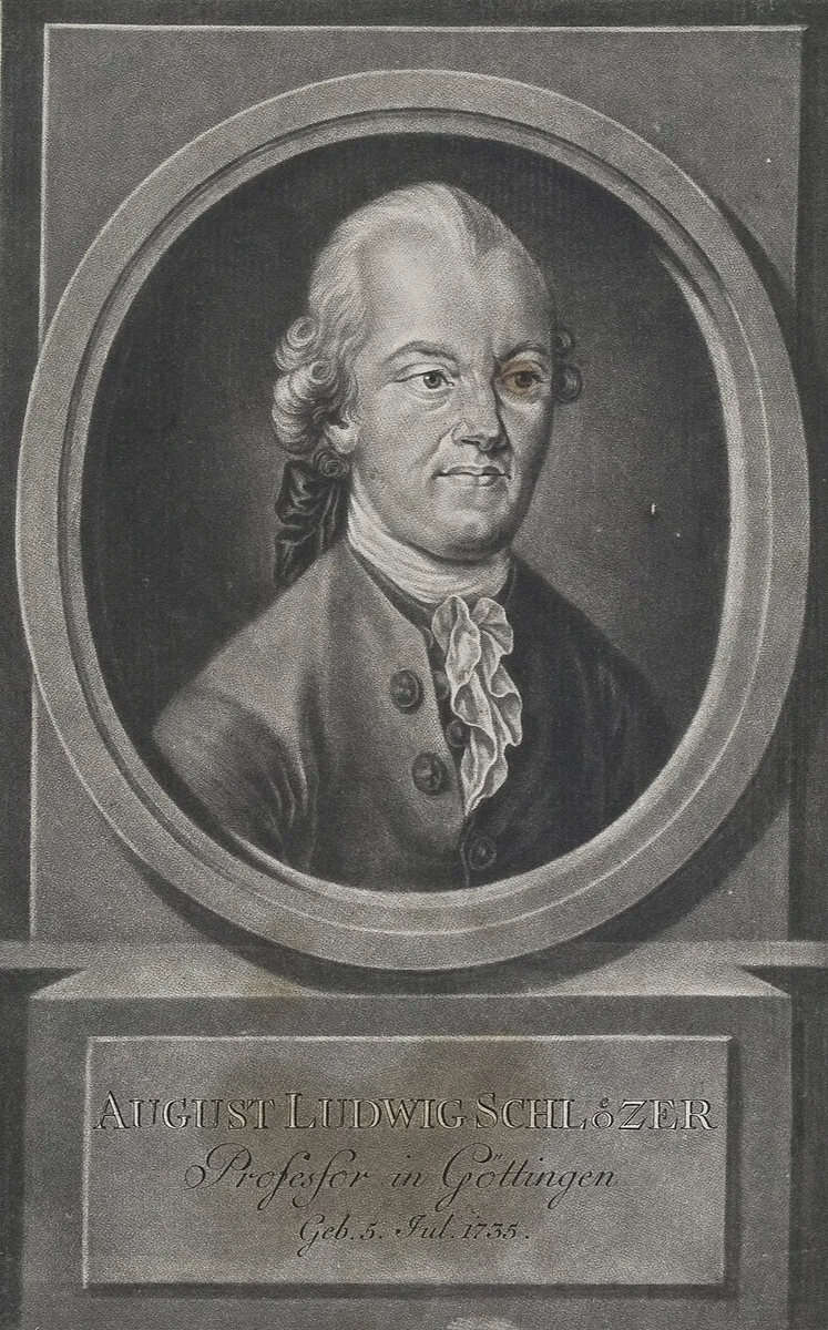 Большое затруднение для Шлёцера, как и для любого иностранца, обращавшегося к изучению русской истории, представлял обычай летописцев называть князей только по имени или по имени-отчеству, из-за чего в одном столетии можно было встретить пять Святославов, в том числе троих с одинаковым отчеством. Во избежание путаницы Шлёцер начинает искать полную генеалогию всех русских князей от Рюрика до Фёдора Иоанновича. Просмотрев множество родословных таблиц, наилучшими он признаёт те, которые нашёл в рукописях Татищева, и ещё какую-то «чрезвычайно большую таблицу, склеенную из нескольких листов, от Рюрика до Елисаветы, с кратким означением главнейших событий», — должно быть составленную Феофаном Прокоповичем.