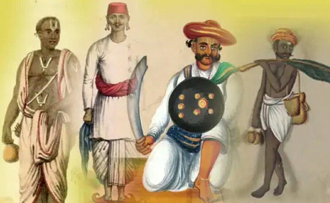 Свидетельства о варнах в упанишадах (этико-филосовских комментариях к ведийским гимнам) сравнительно немногочисленны. Тем не менее они весьма интересны, потому что принадлежат к числу древнейших свидетельств подобного рода. Это относится к Брихадараньянке и Чхандогье, созданным около VIII– VIвв. до н. э. В Брихадараньянке изложена легенда о происхождении из Брахмана ипостасей остальных трех варн[1] и указаны некоторые их функции. Далее термин варна использован в значении социального подразделения[2]. По содержанию в упанишадах можно выделеть две группы текстов. Первая группа объединяет сюжетно оформленное повествование, изложение определенных событий, ситуация, не заключающее в себе каких-либо догматических предписаний, т. е. нарративная группа. Вторую группу составляют «догматические» тексты. Имеется в виду учение упанишад как наставления в традиционных ведийских обрядах, так и достаточно отвлеченные поучения, сводящиеся обычно к провозглашению определенных тождеств, которые связываю