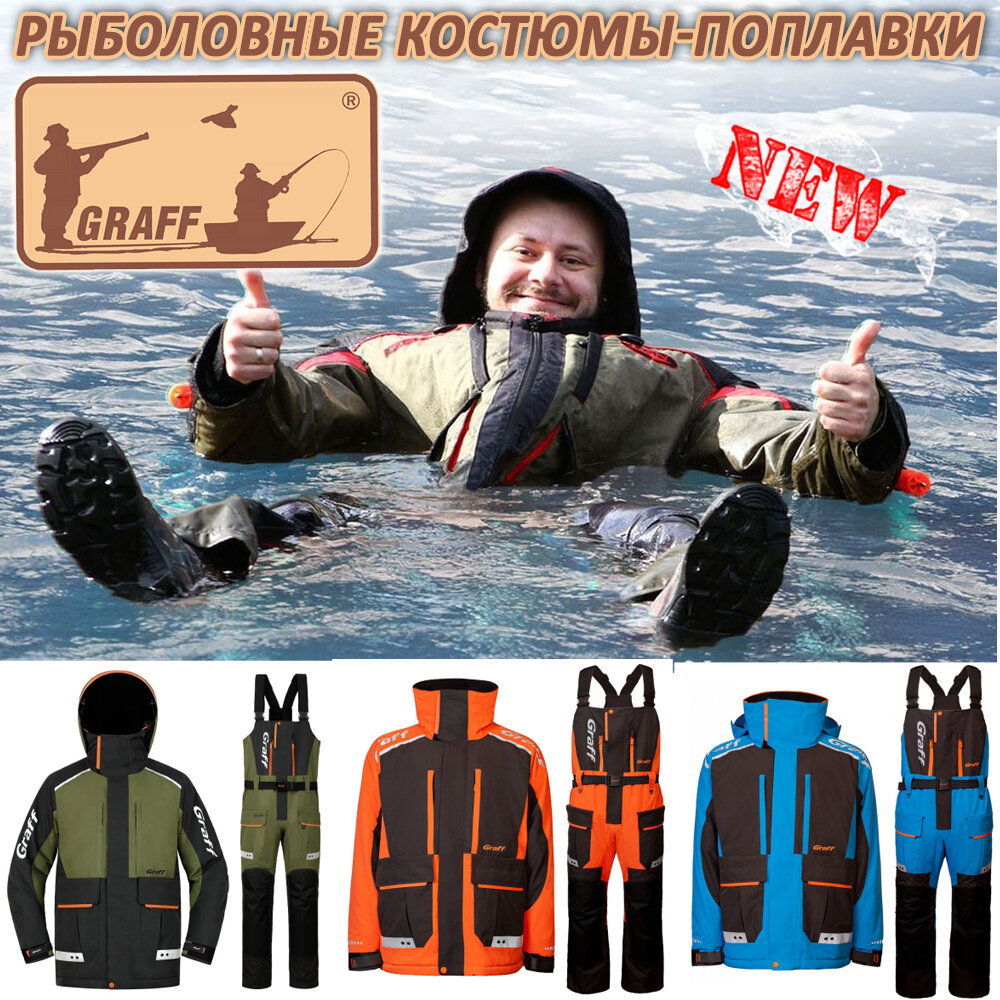 Новости Rybalkashop Уважаемые рыболовы! Близится сезон зимней рыбалки и наш интернет магазин предлагает Вам заранее подготовиться к любимому хобби и позаботиться о своем комфорте. НОВИНКА нашего магазина Рыболовные костюмы-поплавки Graff. Костюмы поплавки обеспечат дополнительную безопасность при рыбалке на тонком льду или с лодки. Удобный крой комбинезона обеспечивает отличную свободу движений даже при активной ловле на спиннинг. Такой костюм надёжно держит человека на воде, защищает от холода и амортизирует удары. Под брендом Graff выпускается одежда нескольких специализированных линеек, одна из которых ориентирована именно на рыболовов. Компания Graff - это ведущий польский производитель одежды, коллекции которого - это полный спектр одежды: термобелье, футболки, свитера, жилеты, куртки и брюки, головные уборы. Graff является синонимом уникальных дизайнов. Уже на этапе проектирования одежды, дизайнеры Graff собирают информацию о современных тенденциях, узнают пожелания своих клиенто