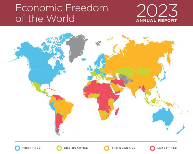Канадский аналитический центр института Фрейзера опубликовал отчет об экономической свободе в мире (Economic Freedom of the World). Индекс измеряет свободу выхода на рынки и конкуренцию, возможность личного выбора и добровольного обмена, безопасность личности и частной собственности в 165 странах.