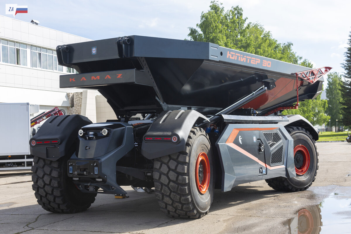 Грузовые автомобили отечественного производства традиционно являются одними из лучших в мире в определённом смысле. Речь идёт от тяжёлой спецтехники, предназначенной для работы в суровых климатических условиях. Так уж сложилось исторически, что в СССР и РФ умеют делать подобные вещи. Дальше речь пойдёт о грузовике будущего, безо всяких на то оговорок. КамАЗ Юпитер 30 по номенклатуре предприятия называется КАМАЗ-6559. Поэтому справедливо использовать оба эти наименования. Это карьерный самосвал без кабины, с дистанционным управлением, который использует электрическую тягу для движения. У него есть множество интереснейших черт, о которых будет любопытно узнать. Но сначала немного истории. Старт проекту был дан не так давно. В 2019 году совместными усилиями Политеха Кузбасса и ПАО «КАМАЗ» положена основа многочисленным исследованиям на тему, как сделать возможным добычу и перевозку сыпучих грузов в карьерах. Само по себе это занятие – дело сложное и опасное для жизни. В условиях России